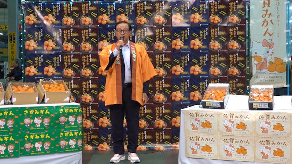 11月16日(土)、東京青果卸売場イベントスペースにおいてにおいて、佐賀県産『露地みかん』の展示会が開催されました。会場には佐賀県みかん部会笹川部会長が来場されました。