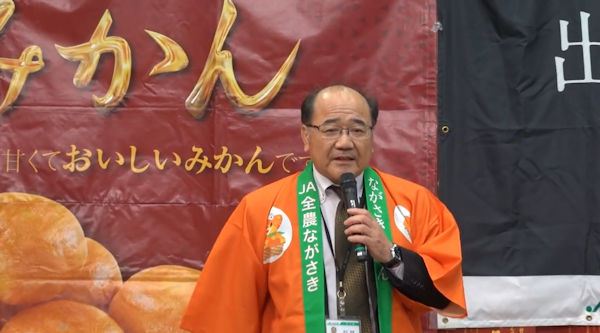 初売りに際し、JA全農ながさき 谷口本部長、JAながさき西海 山本代表理事専務、長崎県JA果樹研究会  古川会長をはじめ関係者の方々が来場され、市場関係者に向けてPRをされました。