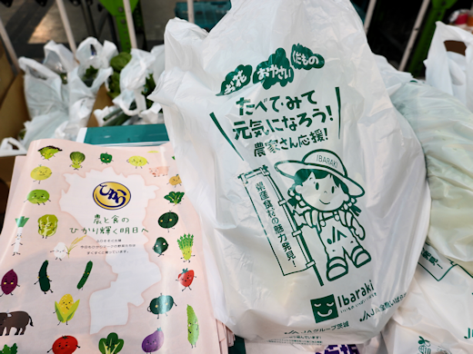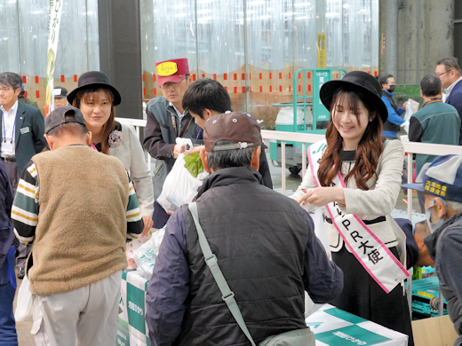 イベント終了後、JA常総ひかりPR大使のお二人から市場関係者へ野菜が配布されました。