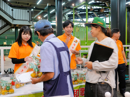 ”橋本かき大使”の田中さん、辻さんより来場者に柿の試供品が配布され、大盛況のうちに終了しました。