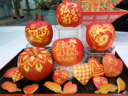 弊社カービング部が手がけたりんごの彫刻を、写真に収める市場関係者の姿も見受けられました。