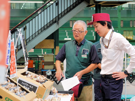 『長ねぎ』『しいたけ』を市場関係者に振舞いました。