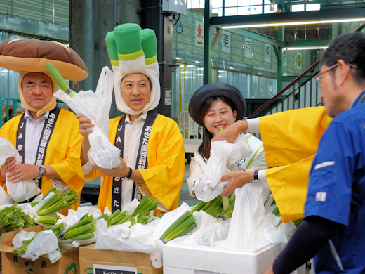 10月9日(木)、東京青果卸売場にて、JAグループ秋田による『長ねぎ』『しいたけ』トップセールスが開催されました。