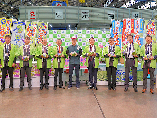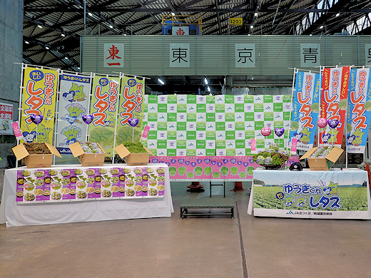 これから最盛期を迎えるレタスのアピールをすべく、10月17日(金)東京青果卸売場にてJA北つくば・JA全農いばらき・結城市によるトップセールスが開催されました。