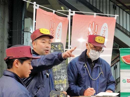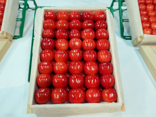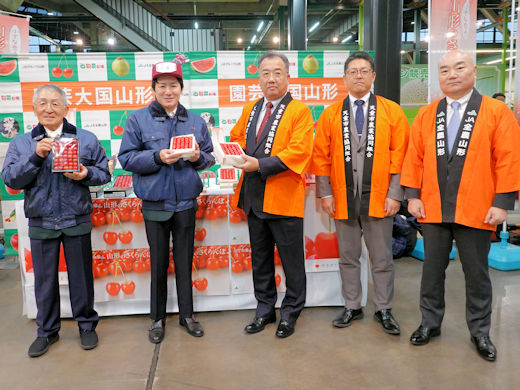 初市を華やかに彩るさくらんぼが山形から届けられました。