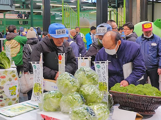 多数の市場関係者の集まる中、「さぬき讃ベジタブル」「さぬき讃フルーツ」をPRしました。