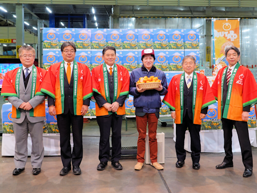 2月2日(月)、東京青果卸売場にて、JAふじ伊豆 西浦『寿太郎みかん』が初荷を迎えるにあたりトップセールスが開催されました。
