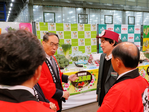 挨拶に立った大野知事や坂本会長からは、埼玉県産農産物の品質と魅力が力強くPRされ、市場関係者へ継続した取り扱いへの協力が呼びかけられました。