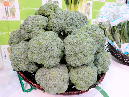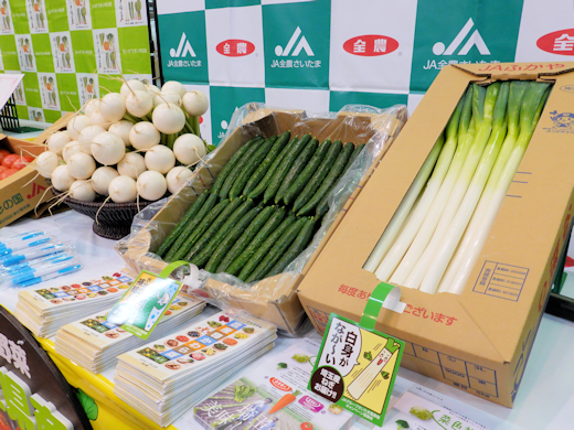 会場には、今が最盛期を迎えるきゅうりやブロッコリーをはじめ、ネギ、ほうれん草、小松菜など、多彩な春野菜が展示されました。