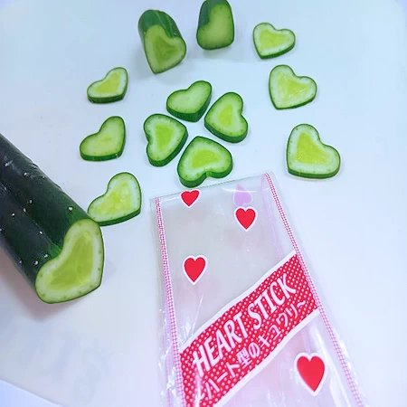 『ハート・スター胡瓜』を、お子さまのお弁当に入れたり、クリスマスやバレンタイン・ひな祭りなどの季節のイベントに使えば、楽しい雰囲気の見た目に。