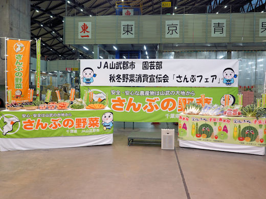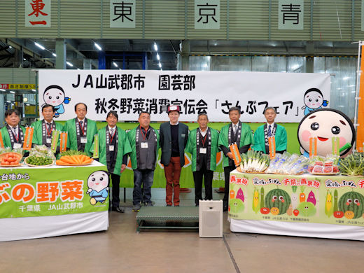 11月22日(土)、東京青果卸売場にて、JA山武郡市によるトップセールスが開催され、JA山武郡市小川園芸部長、産地関係者が多数来場されました。「本年度は天候の影響などで栽培に苦労しましたが、現在は順調に生育し、皆様に自信を持ってお届けできる状態です。」とご挨拶されました。