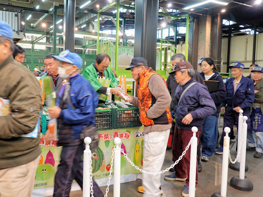 産地関係者から市場関係者の皆様へ、ねぎと人参が振る舞われました。