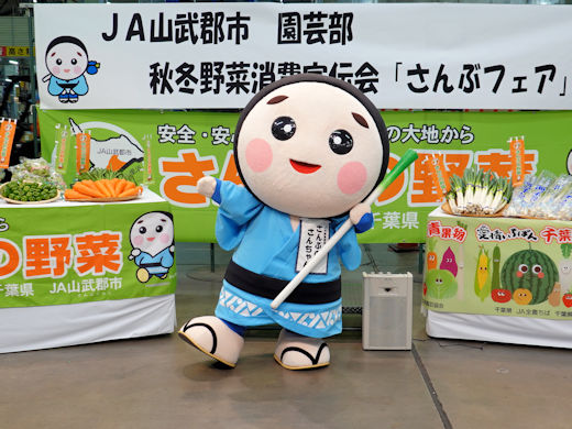 JA山武郡市の特命係長「さんぶのさんちゃん」も、産地関係者の皆様とともにご来場されました。