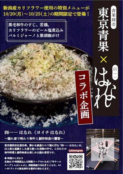 和牛を中心とした創作和食を提供する四一一 はなれ様が考案された旬の『カリフラワー』のメニューが登場します。